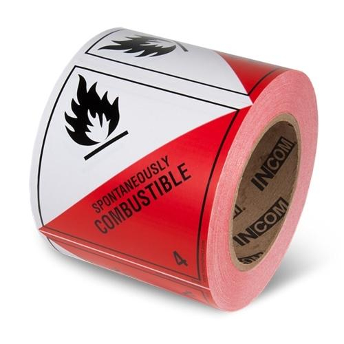 Incom, TA42V, 4" x 4" Vinyl Safety Label: "Spontaneously Combustible 4"