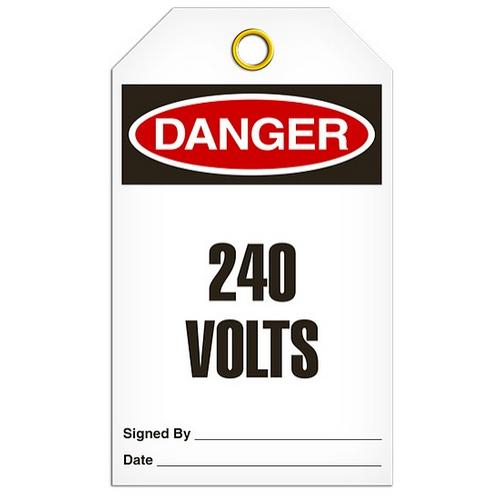 Incom, TG1022RP, Tag "Danger - 240 Volts", 3.375" x 5.75", 15-mil Rigid Duraply Plastic
