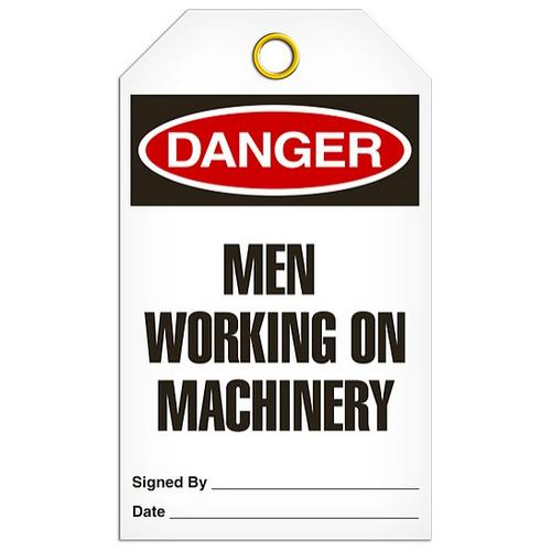 Incom, TG1028RP, Tag "Danger - Men Working On Machinery", 3.375" x 5.75", 15-mil Rigid Duraply Plastic