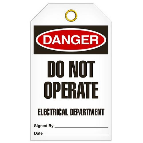 Incom, TG1043RP, Tag "Danger - Do Not Operate Electrical Department", 3.375" x 5.75", 15-mil Rigid Duraply Plastic
