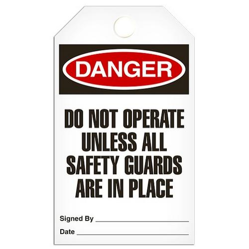 Incom, TG1046PT, Tag "Danger - Do Not Operate Unless All Safety Guards are in Place", 3.375" x 5.75", 10-mil Plastic