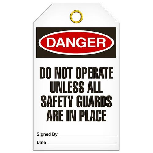 Incom, TG1046RP, Tag "Danger - Do Not Operate Unless All Safety Guards are in Place", 3.375" x 5.75", 15-mil Rigid Duraply Plastic