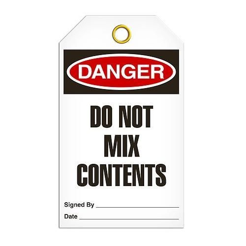 Incom TG1101PT Tag Danger "Do Not Mix Contents", Poly