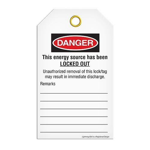 Incom TG1118PT Tag Danger "Locked Out Do Not Operate", Poly Tag