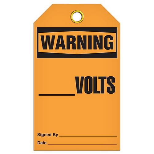 Incom, TG4010RP, Tag "Warning - ___Volts", 3.375" x 5.75", 15-mil Rigid Duraply Plastic