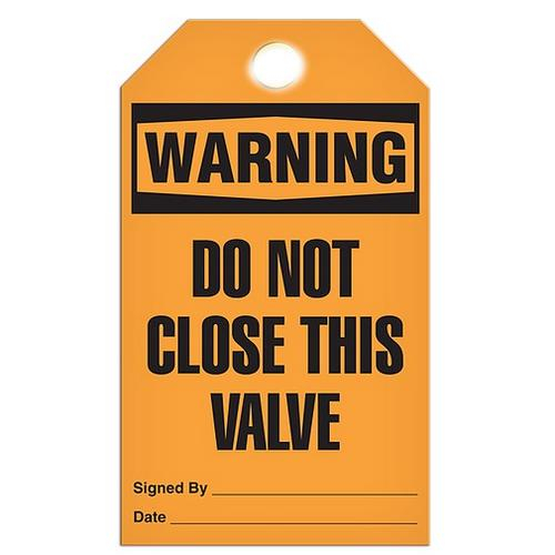 Incom, TG4013PT, Tag "Warning - Do Not Close this Valve", 3.375" x 5.75", 10-mil Plastic