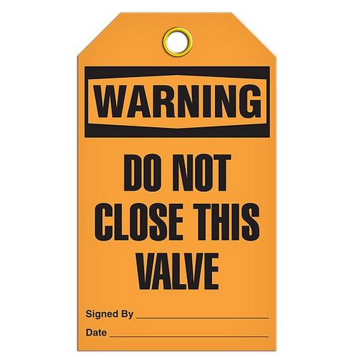 Incom, TG4013RP, Tag "Warning - Do Not Close this Valve", 3.375" x 5.75", 15-mil Rigid Duraply Plastic