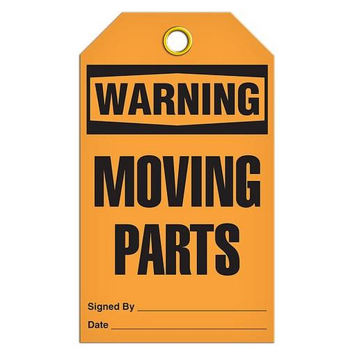Incom, TG4016RP, Tag "Warning - Moving Parts", 3.375" x 5.75", 15-mil Rigid Duraply Plastic