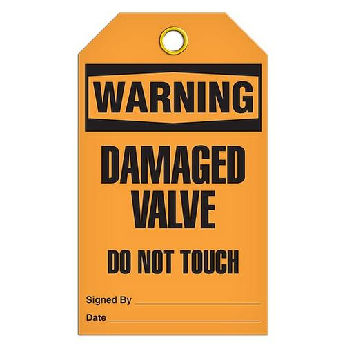 Incom, TG4033RP, Tag "Warning - Damaged Valve Do Not Touch", 3.375" x 5.75", 15-mil Rigid Duraply Plastic
