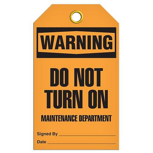 Incom, TG4042RP, Tag "Warning - Do Not Turn On Maintenance Department", 3.375" x 5.75", 15-mil Rigid Duraply Plastic