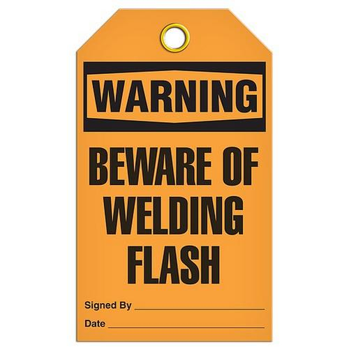 Incom, TG4048RP, Tag "Warning - Beware of Welding Flash", 3.375" x 5.75", 15-mil Rigid Duraply Plastic