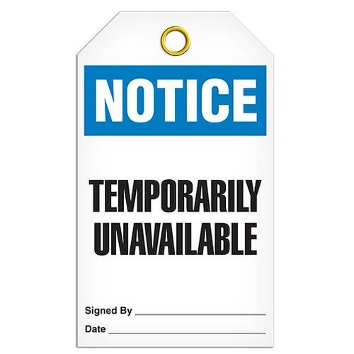 Incom, TG5003RP, Tag "Notice - Temporarily Unavailable", 3.375" x 5.75", 15-mil Rigid Duraply Plastic
