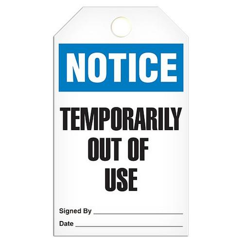 Incom, TG5004PT, Tag "Notice - Temporarily Out of Use", 3.375" x 5.75", 10-mil Plastic
