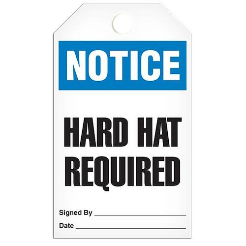 Incom, TG5016PT, Tag "Notice - Hard Hat Required", 3.375" x 5.75", 10-mil Plastic