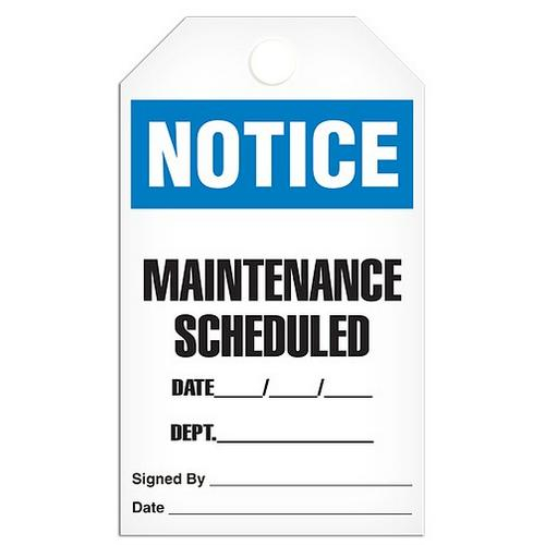 Incom, TG5022PT, Tag "Notice - Maintenance Scheduled Date_ /_ /_ Dept____", 3.375" x 5.75", 10-mil Plastic