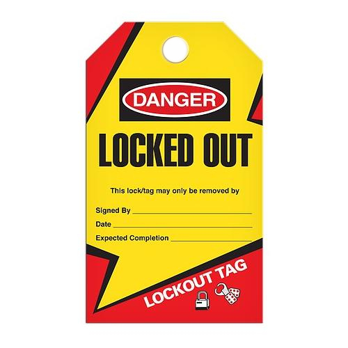 10-mil Poly Tag with 3/8" dia drilled hole. This Tag "are used to indicate that energy isolating devices are in use and the equipment being controlled may not be operated until the Lock Out/Tag "Out Device is removed. Tags include patented "Lightning Bolt" for drawing attention to the lockout area.