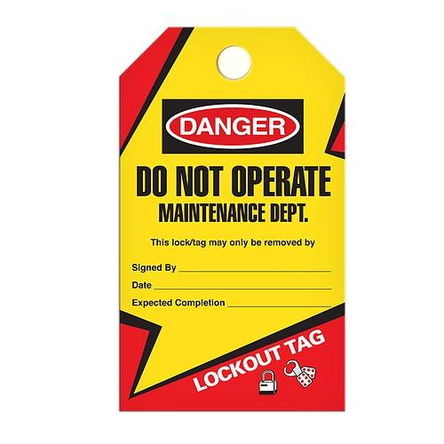 Incom, TG6003PT, Lockout Tag "Do Not Operate Maintenance Dept", Poly Tag, 3.3" x 5.7"