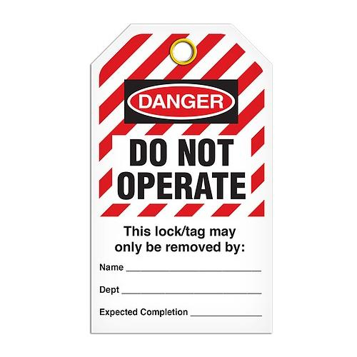 Incom, TG6025RP, Lockout Tag "Do Not Operate", Hazard Stripe, Rigid Duraply, 3.3" x 5.7"