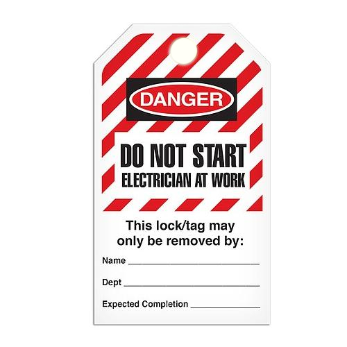 Incom, TG6029PT, Lockout Tag "Do Not Start Electrician At Work", Hazard Stripe, Poly Tag, 3.3" x 5.7"