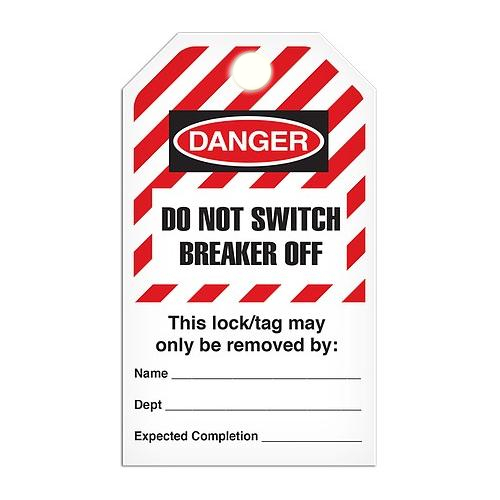 Incom, TG6035PT, Lockout Tag "Do Not Switch Breaker Off", Hazard Stripe, Poly Tag, 3.3" x 5.7"