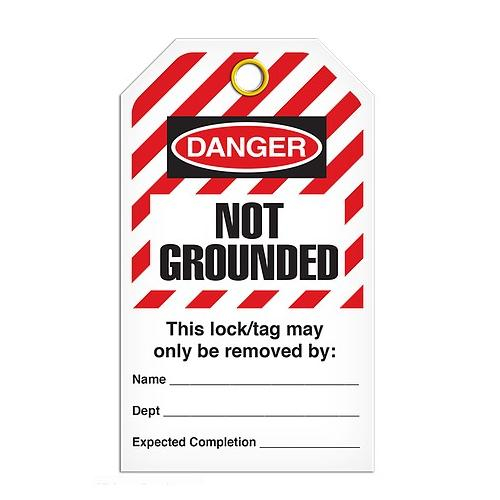 Incom, TG6036RP, Lockout Tag "No Grounded", Hazard Stripe, Rigid Duraply, 3.3" x 5.7"