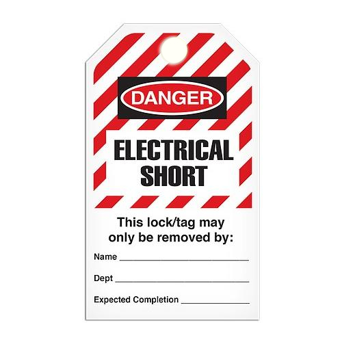 Incom, TG6039PT, Lockout Tag "Electrical Short", Hazard Stripe, Poly Tag, 3.3" x 5.7"
