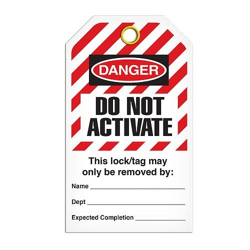 Incom, TG6048RP, Lockout Tag "Do Not Activate", Hazard Stripe, Rigid Duraply, 3.3" x 5.7"