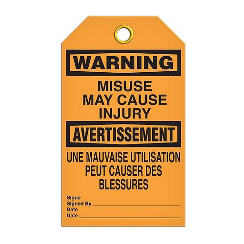 Incom, TG7016RP, Warning Tag "Misuse May Cause Injury", Rigid Duraply