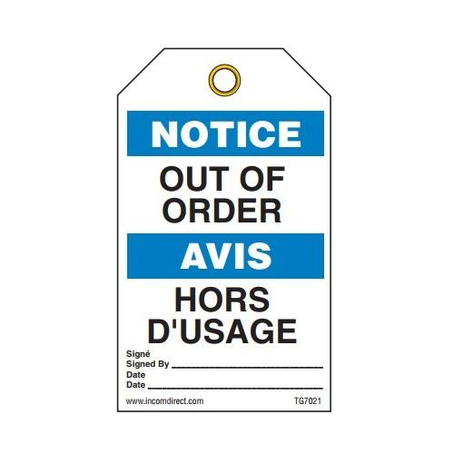 Incom, TG7021RP, Notice Tag "Out of Order", Rigid Duraply