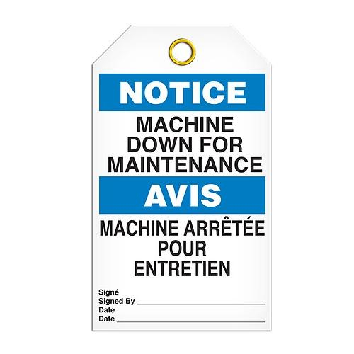 Incom, TG7022RP, Notice Tag "Machine Down for Maintenance", Rigid Duraply