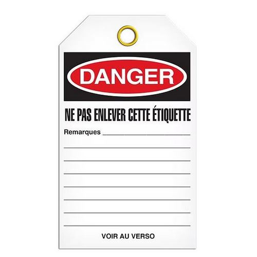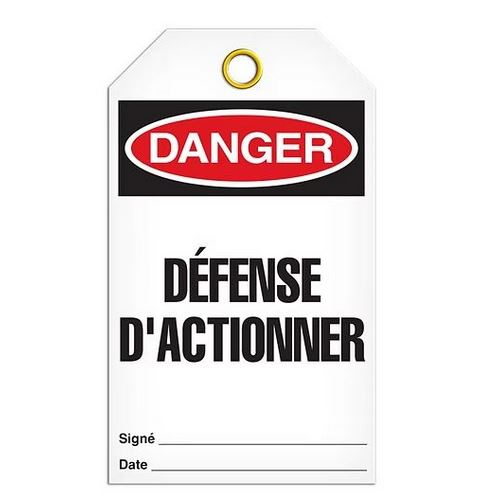 Incom, TG7100RP, French Danger Tag "Defense D'actionner" Metal Grommet