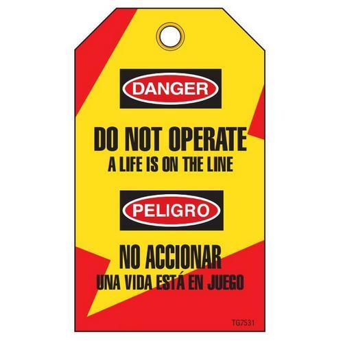 Incom, TG7531RP, Bilingual Lockout Tags "Do Not Operate A Life Is On The Line", Rigid DuraPly