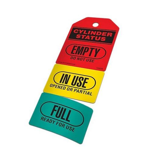 Tear off each section of the tag as the cylinder moves through from full to empty. Made from All-Weather Duraply synthetic tag stock for use both indoors and outdoors. It can be easily written on with a pen, pencil and markers.