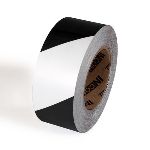 Incom, TM1204BW, Tuff Mark 4" x 100' White/Black Floor Marking Tape