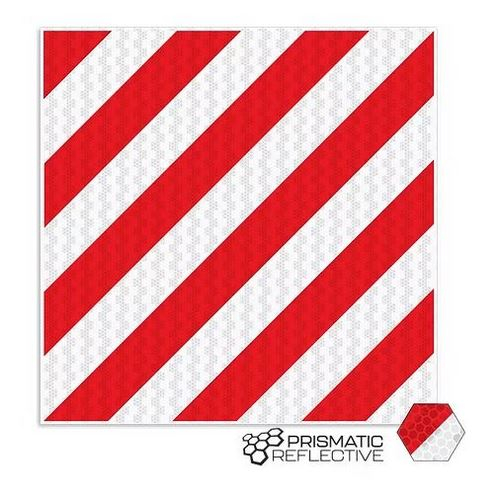 Reflective aluminum with red and white diagonal striped sign provides visibility in low-light conditions. Signs are made with an engineer grade reflective sheeting lamination to a 3mm (0.118") thick aluminum composite base stock. Creates a durable, weather resistant, rust-proof product.