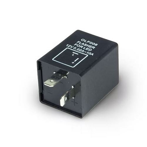 These are an older 2-prong style LED flasher that was used in older Barpek brand pilot car signs to control the amber corner flashing lights. These are no longer used in current production signs, but are available as spare parts for the older units. (12-volt electrical). This style of flasher is intended to be plugged into a slotted style base receptacle.