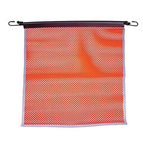 Blaze Orange Durable Polyester Jersey Safety flag with bungee cord for easy, secure attachment and removal. Reflective sewn edges for added nighttime visibility and durability. Bungee cord on both sides for easy attachment and removal.