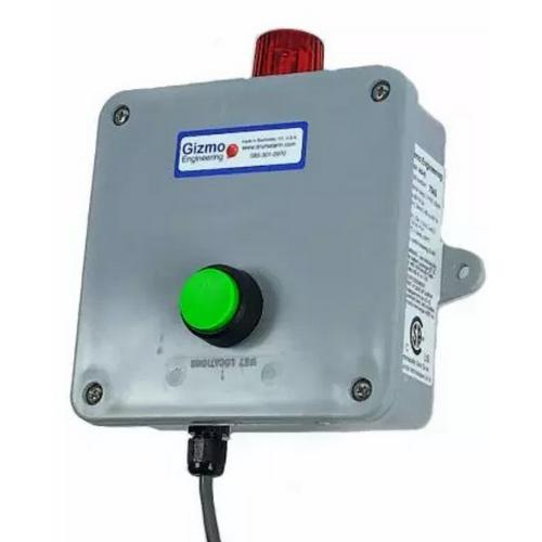 Connects to a normally closed (or open) contact and converts it to a loud buzzer and a flashing LED. The 101 dB buzzer has a unique warbling sound that cuts through the sound of the factory. At the time of a level conditions, the buzzer sounds and the beacon LED flashes. At this time the front button will turn off the buzzer. In the default mode, the LED continues to flash until the liquid level is corrected. Resets automatically when alarm condition is corrected. If not in alarm mode, then the front button checks the alarm. Different behaviors can be selected using the DIP switches inside the box.