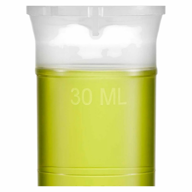 Globe Scientific, Sample Vial, 30mL, Flip Top with Locking Tab, and Tamper Seal, Molded Graduations at 15 at 30mL