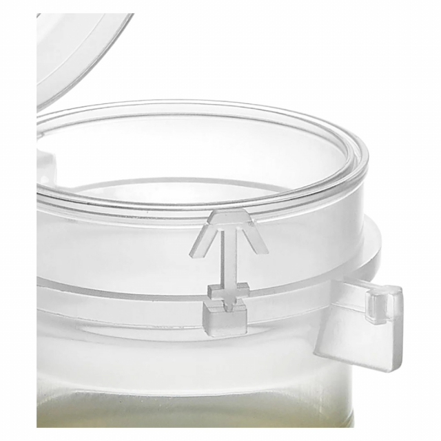 - Permanent Hinged Lid: The permanent hinged lid enables easy, one-handed operation, reducing the risk of losing the lid or cross-contaminating the sample.