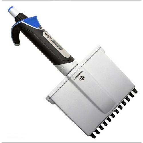 The Diamond Advance 12-channel pipettors are simple to operate, light weight and extremely comfortable to use. They feature a 360Degrotating manifold which provides universal right or left hand use. Utilizing an elastomer grip, fatigue of the hands and fingers is minimized. The unique padding minimizes the transfer of body heat to the pipette, resulting in consitant accuracy. Each pipettor is color coded for quick volume identification. The pipettors are calibrated in an ISO 17025 accredited laboratory
