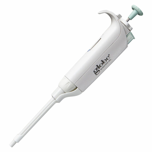 Globe Scientific, Diamond PosiStop Pipette, Fully Autoclavable, Adjustable Volume, 20 - 200ul, Green