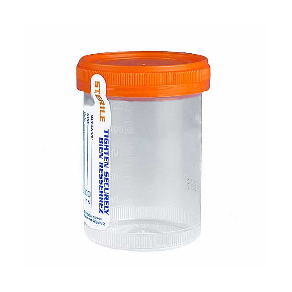 Globe Scientific, 6529, Container: Tite-Rite, 120mL (4oz), PP, STERILE, Attached Orange Screw Cap, ID Label, Graduated, Individually Wrapped