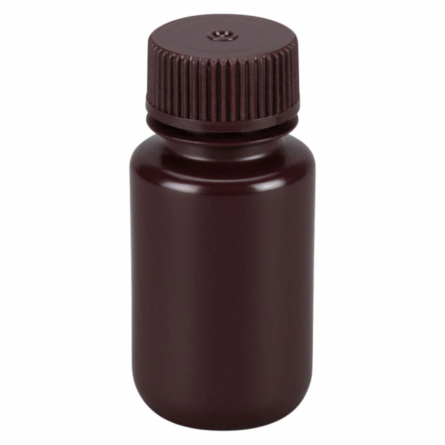Globe Scientific, Diamond Essentials 60mL Bottle, Wide Mouth, Round, Amber HDPE with Amber PP Closure