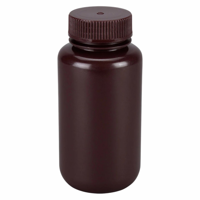 Globe Scientific, Diamond Essentials 250mL Bottle, Wide Mouth, Round, Amber HDPE with Amber PP Closure