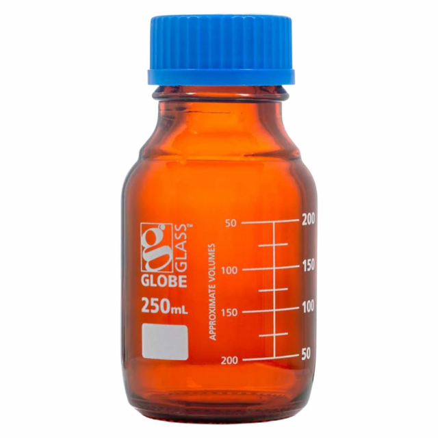 Globe Glass™ amber media bottles are designed with a wide mouth for ease of filling, dispensing, and pipetting. A drip-free pour ring and autoclavable polypropylene (PP) screw cap enable sterilization of media and reagents. Globe Glass amber media bottles are a great choice for mixing, storing, and transporting light-sensitive solutions and media.