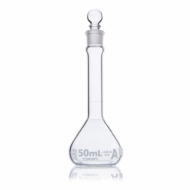 Globe Scientific, 8230050, 50mL Volumetric Flask, Globe Glass, Class A, Wide Mouth