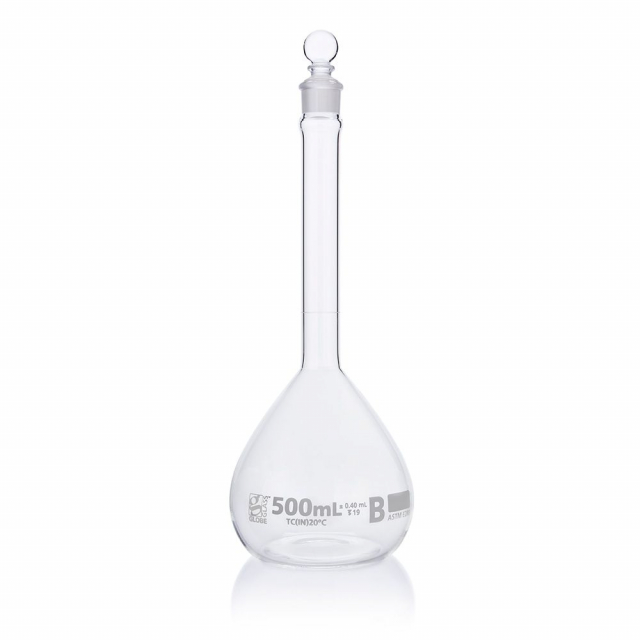 Globe Scientific 8250500 Volumetric Flask, Globe Glass, Class B 500mL