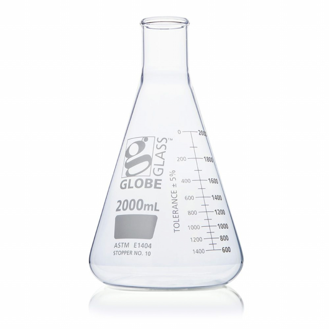 Globe Scientific, 8402000, 2000mL Erlenmeyer Flask, Globe Glass, Narrow Mouth