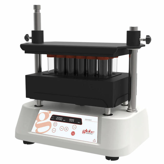 Globe Scientific's GVM-MULTI, Multi Tube Vortex Mixer, is specifically designed for a variety of laboratory and industrial applications. GVM-MULTI is a robust workhorse, delivering exceptional performance in speed, reliability, precision, and safety. Engineered for hands-free mixing of numerous tubes, flasks, vials, and cylinders, the GVM-MULTI will accommodate any method required for your process.